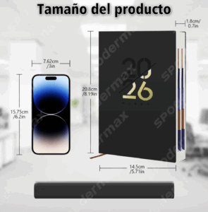 Dimensiones Largo x Ancho 20.8 cm x 14.5 cm Otros Material de la portada Cuero Tipo de encuadernación Cosido Tamaño de las hojas A5 Cantidad de hojas 312
